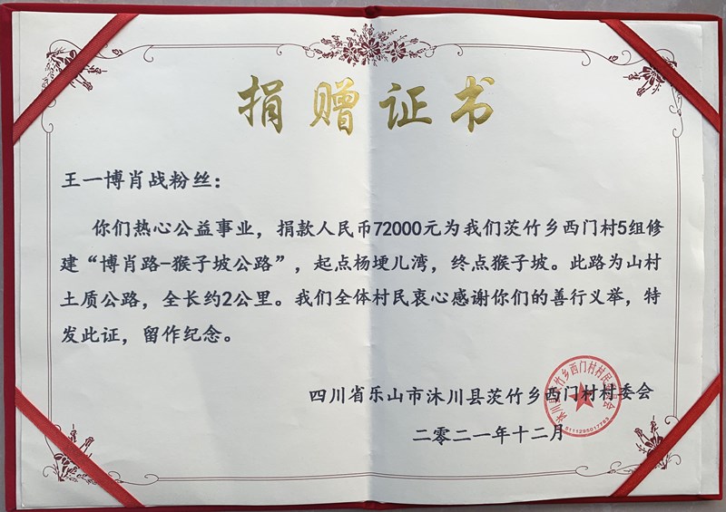 捐赠证书。