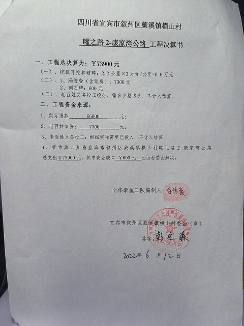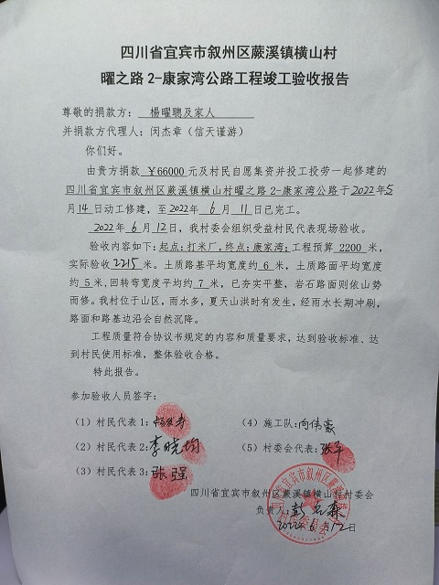 标题: 第317条:四川省宜宾市叙州区蕨溪镇横山村棬坪组康家湾公路-已定