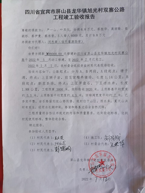 标题: 第319条:四川省宜宾市屏山县龙华镇旭光村双寨公路-已定
