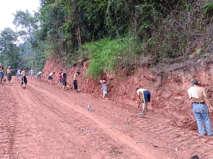 1.爱心人捐款、村民投工投劳一起修土路,干季能通车.