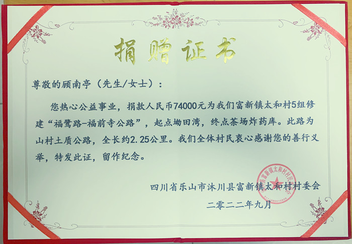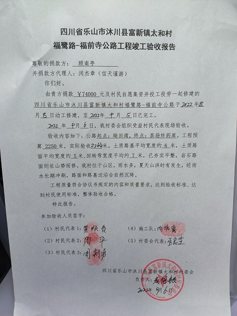 标题: 第321条:四川省沐川县富新镇太和村5组福前寺公路-顾南亭
