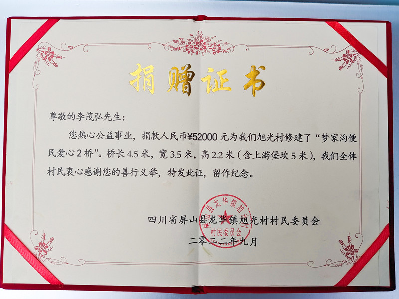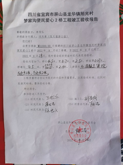 » 107座桥:四川省屏山县龙华镇旭光村梦家沟便民爱心2桥(李茂弘)