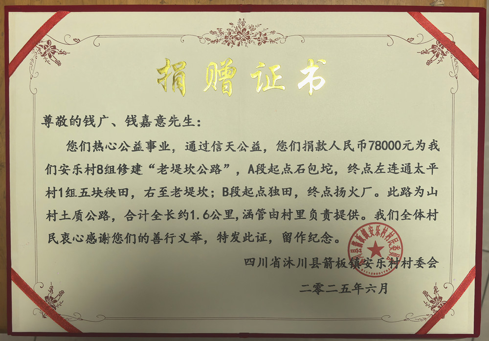 捐赠证书