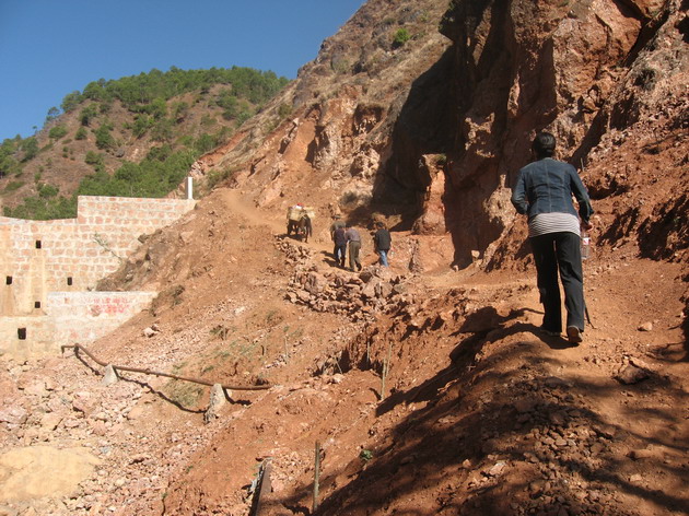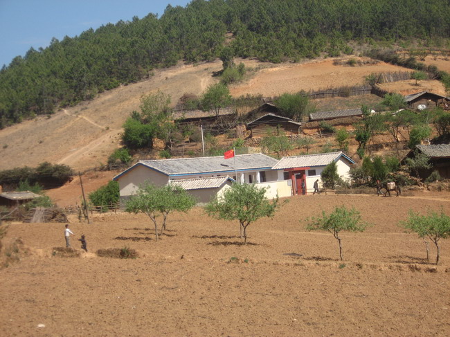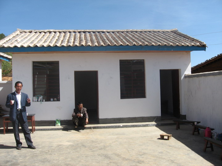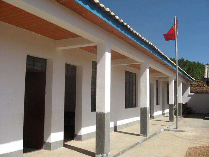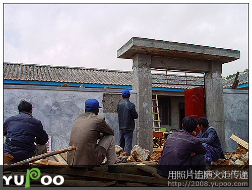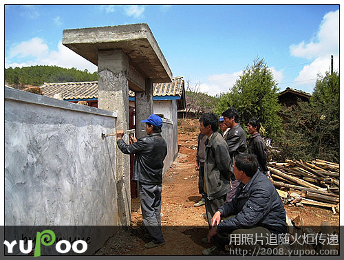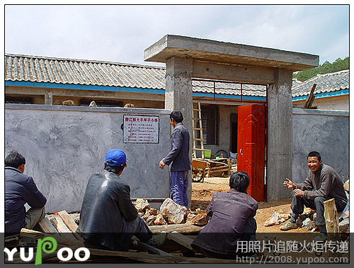 天空放晴了,大朵大朵的白云围绕着小村庄,工人师傅们短暂休息后又投入紧张的工作。我在村子里随意地走走,几个村民围在水窑前等着提水,尽管国家出资为宁蒗的偏远山村修建了水窑,供水却时断时续,严重影响了工程的进度,工期一拖再拖,所以学校到现在还没有开学。