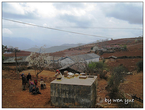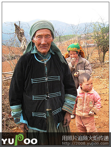 眼前的彝族大妈带着小孙子,岁月的风霜,生活的艰辛,全部刻在一道道皱纹里。她不太会说汉语,指指我手里的相机,我给她照了张相,她看看屏幕上的自己,说:老了,老了------年轻的彝族妇女邀请我去她家喝水,我婉拒了她的好意。