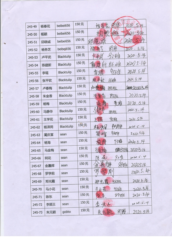 第245批蒗渠中学(2020年3月-2020年8月)受助学生签字确认单