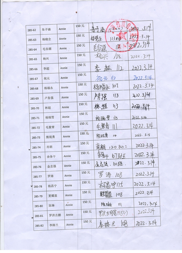 第285批蒗蕖中学(2022年3月-2022年7月)受助学生签字确认单
