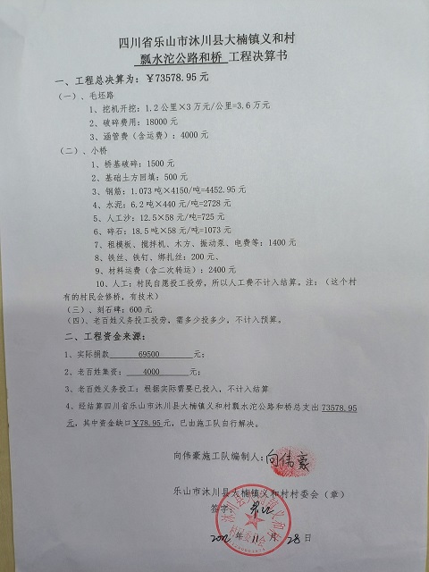 标题: 第324条:四川省沐川县大楠镇义和村9组瓢水沱公路和桥-已定