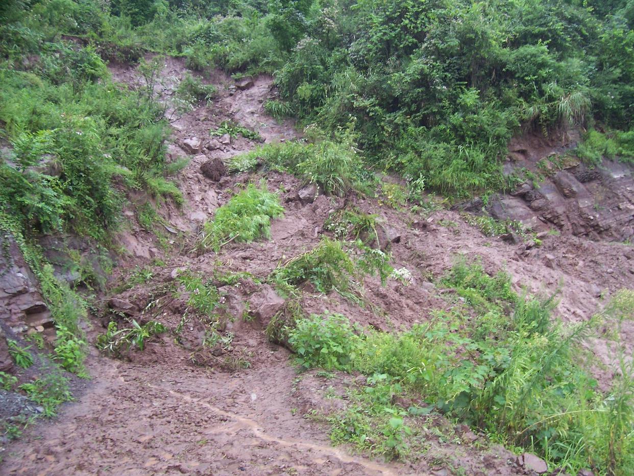 多处塌方滑坡已经把新修的公路阻断,幸好雨季前个新建村校都已经把建材运到现场,但施工还是受到影响,几个稍大的村校,竣工日期可能要延长一些天了,但学生开学上课的事情已经安排好……
