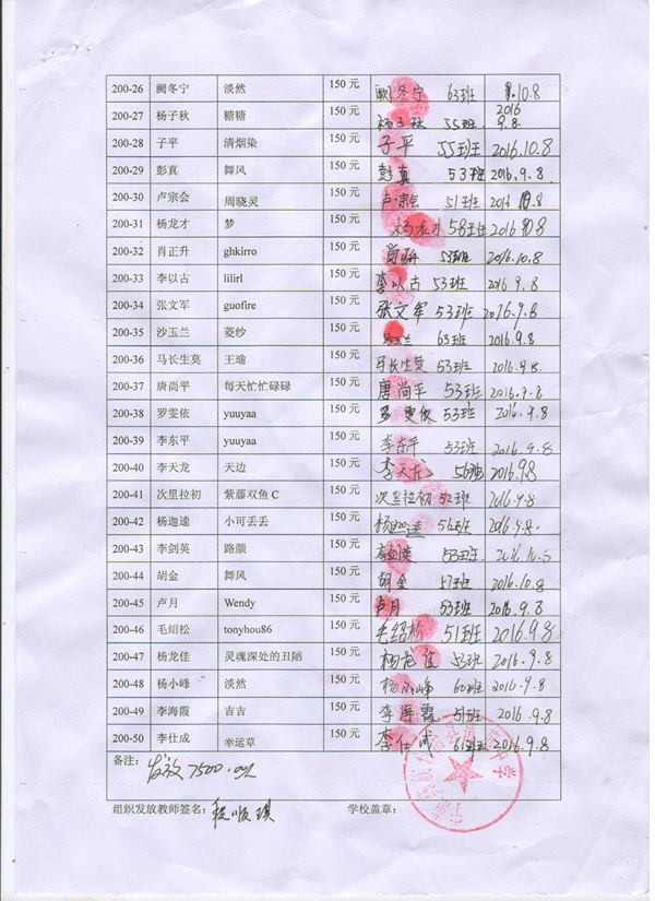 注:200-23何建武,中途休学,资助款是老师代领后,已经转交给学生了。谢谢理解。