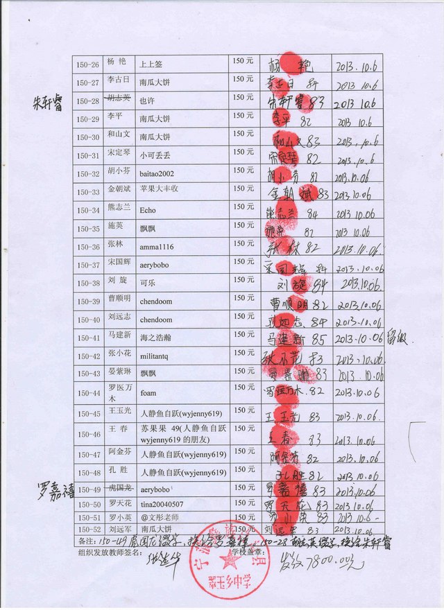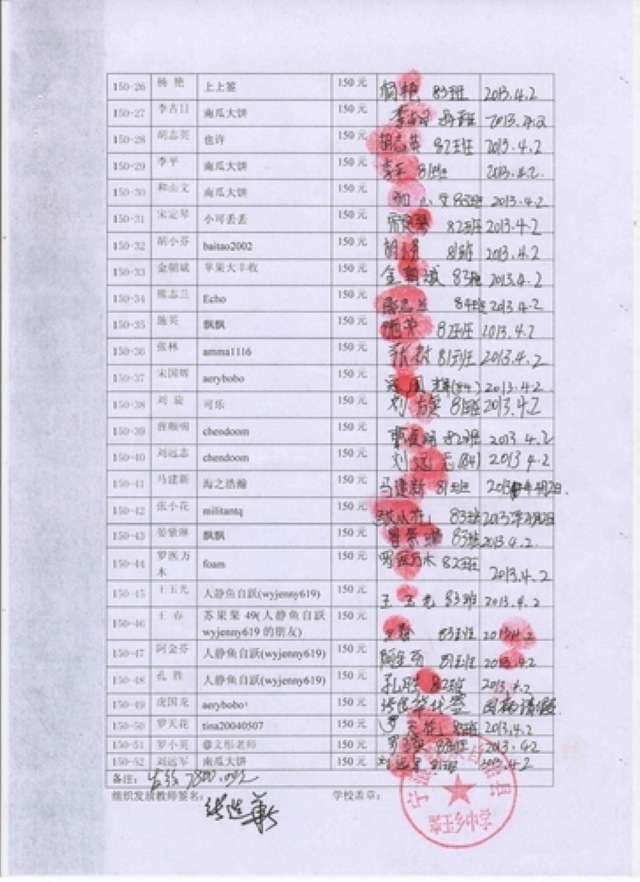 第150批翠玉中学(2013年3月-2013年7月)受助学生签收确认单