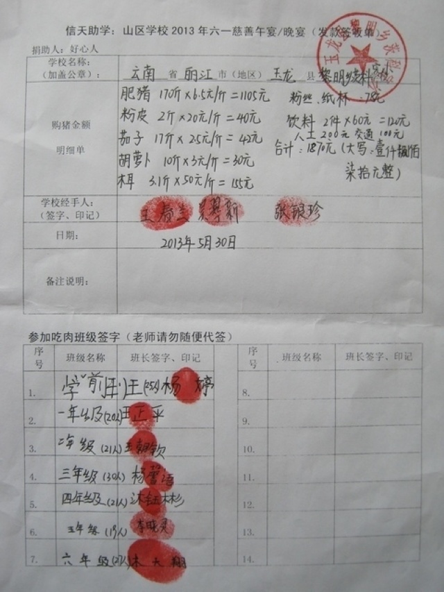 大兴中心校珠洛河完小,2013年六一慈善晚宴签收单.jpg