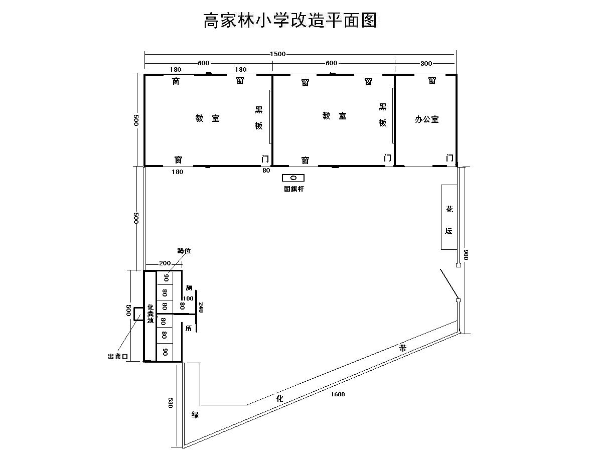1、教室: 3间 规格:5米×6米