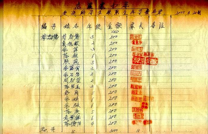 去年金棉中学由于交通不便,老师翻山兼做车到临乡取款,一学期就跑了7趟。最后一个捐助人汇款很迟,为了一个学生的款,又跑了一趟(成本高于捐助款)。