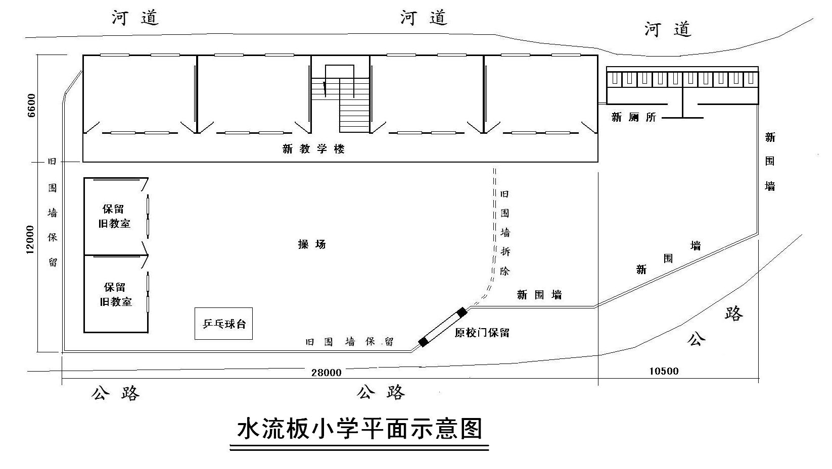 由于学校位于河流和公路之间的狭窄地带,当地希望建楼房以为学生留出多些活动场地,规划建成八间教室(1-6年级、学前班、办公室),保留原两间旧教室作为伙房及宿舍,重新建有10个蹲位的厕所。