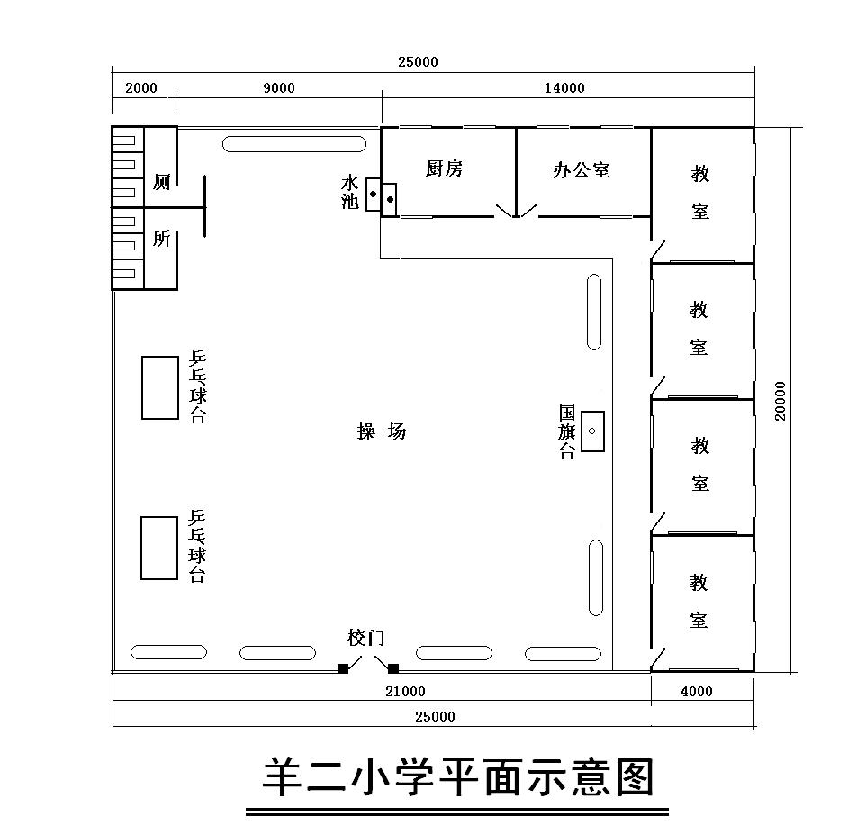 1.教室4间 4米×5米,办公及生活用房2间(3米×5米)