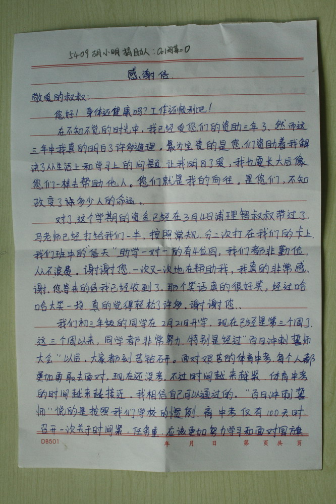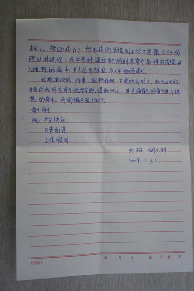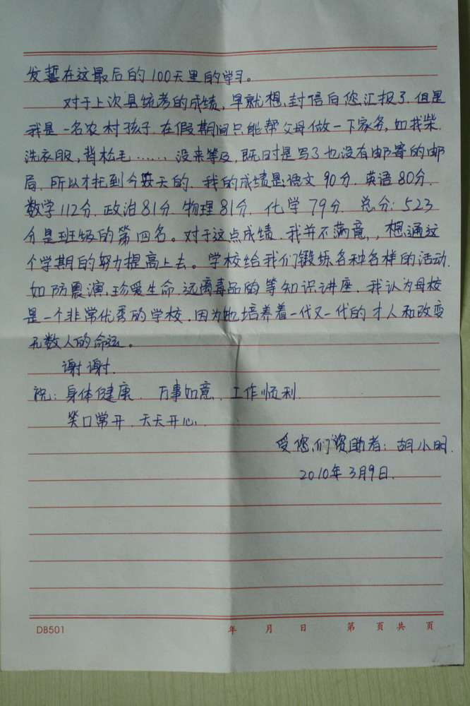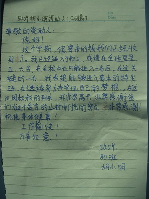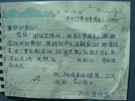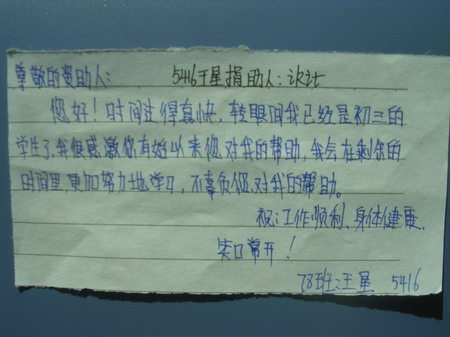 标题: 第54批红旗中学受助学生留言