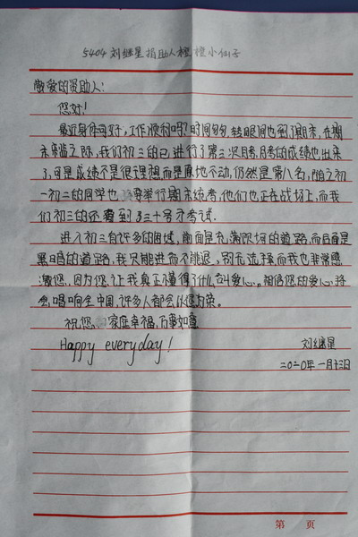 第54批红旗中学受助学生留言