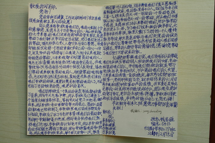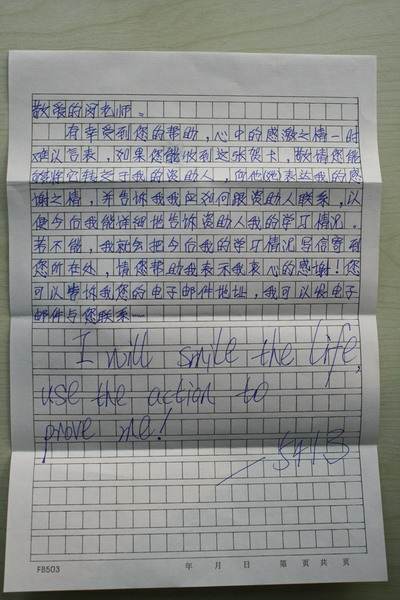 » 第54批红旗中学受助学生留言