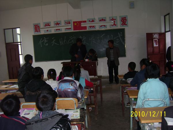 8、我们和当地老师达成如下共识:如果捐助人碰到学生提到需要东西,比如要眼镜、随身听、字典、书籍或有其他方面的情况。可以告诉学生先把他们的困难告诉老师,由老师落实具体后再转告给我们。