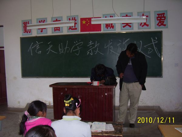 8、我们和当地老师达成如下共识:如果捐助人碰到学生提到需要东西,比如要眼镜、随身听、字典、书籍或有其他方面的情况。可以告诉学生先把他们的困难告诉老师,由老师落实具体后再转告给我们。