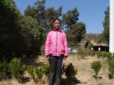家庭情况:家有4口人,父母、哥哥和她。家里有父母2个劳动力,家庭收入主要靠卖农作物。哥哥读八年级成就很好。家到学校先走8公里的山路,在坐5公里的车。