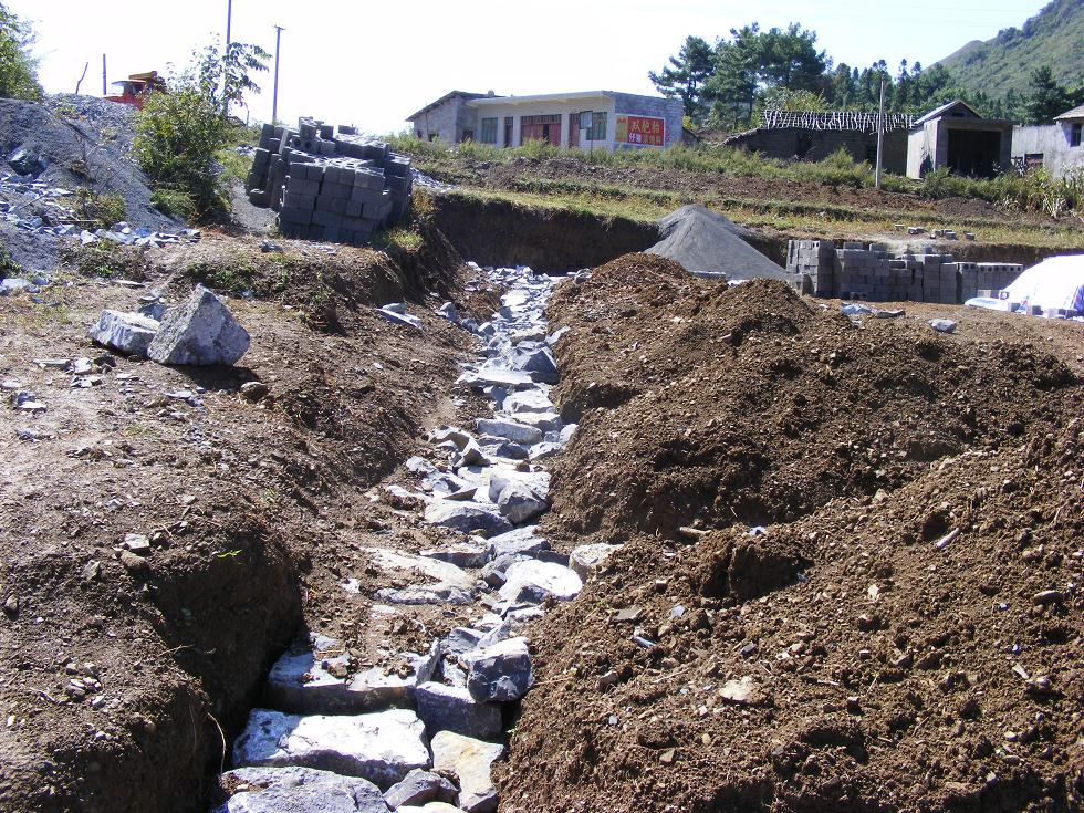 校门围墙距通村公路10米以上 同公路间挖排水通道