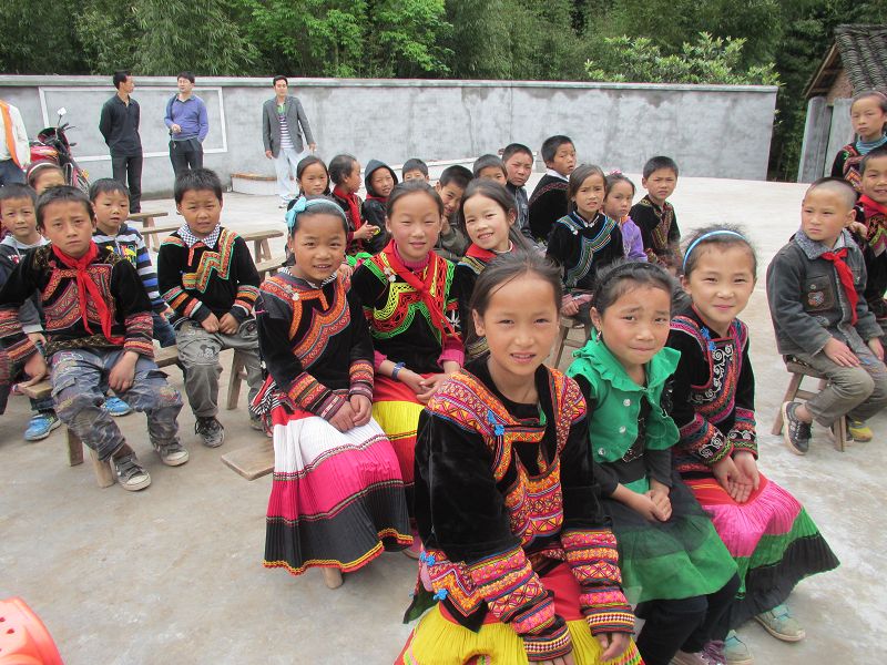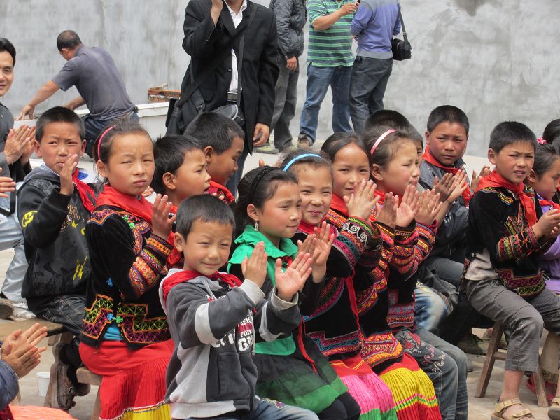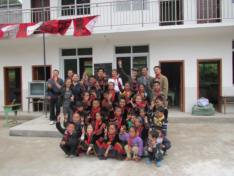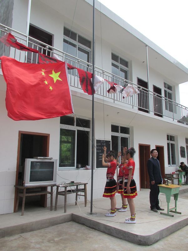 2011年5月4日,四川省马边县民主乡奈河桥小学的师生热烈庆祝新学校建成