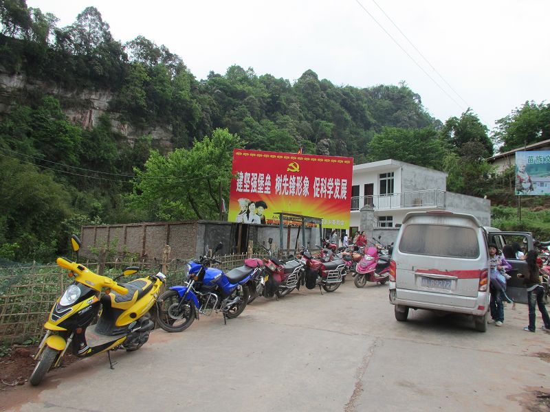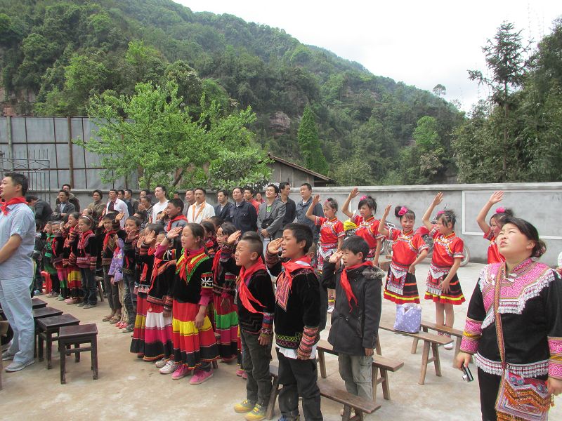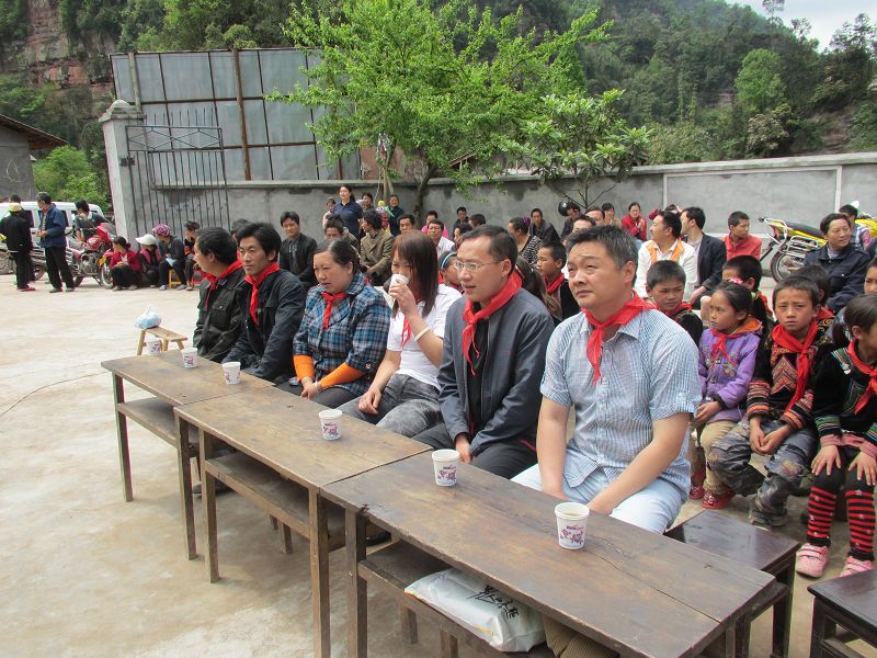 民主乡政府领导、中心校领导、民主乡光华村和荍坝乡太平溪村干部以及中心校能够来的教师都赶来参加了庆典,奈河桥小学的师生和家长们更是早早就等在学校了……