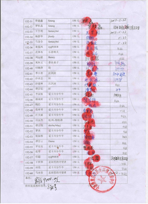 152-05----沈 阳-----女------彝族-------102班--------温岭-啊落 2012年10月28日 招行 9900.00 benny 团队汇出