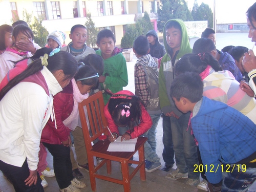 8、我们和当地老师达成如下共识:如果捐助人碰到学生提到需要东西,比如要眼镜、随身听、字典、书籍或有其他方面的情况。可以告诉学生先把他们的困难告诉老师,由老师落实具体后再转告给我们。