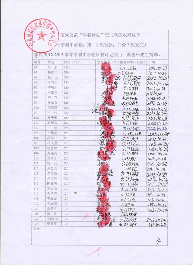 标题: 2012.9-2013.7早餐计划-宁利中心小学(蔡俊乐捐)
