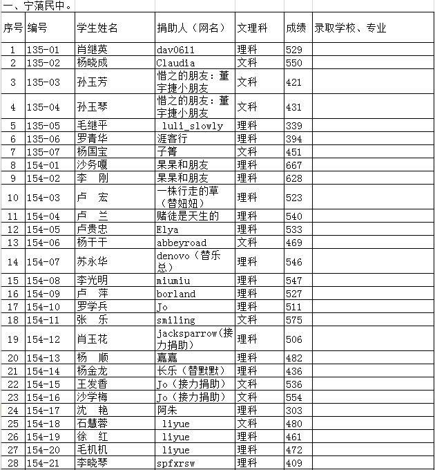 标题: 2015年信天助学受助学生高考成绩统计(2015年7月12日))