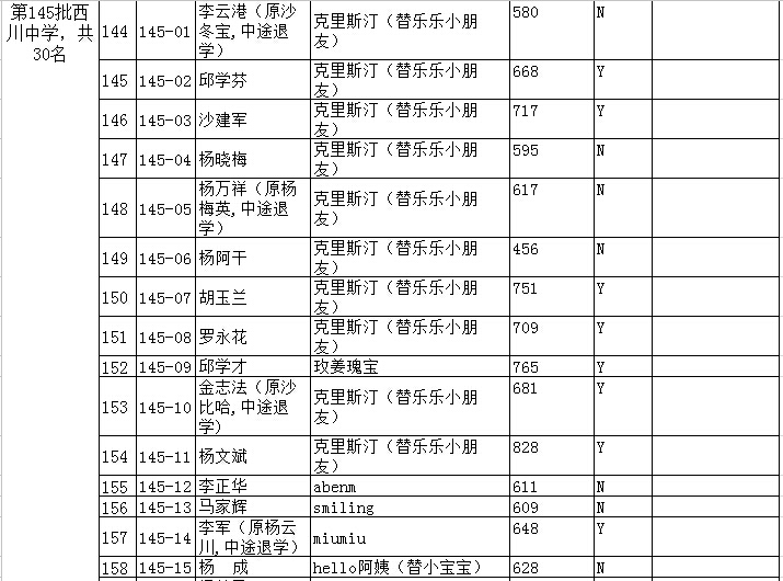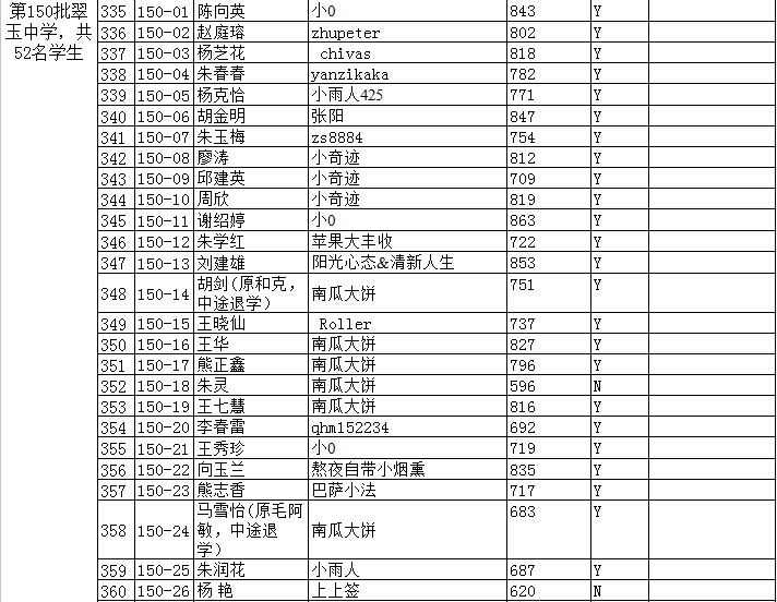 共有以下几批:第142批、143批、144批、145批、146批、147批、148批、149批、150批、151批、152批、153批、157批、158批、159批、160批共16批,初中毕业生一共646名。