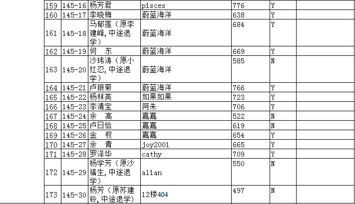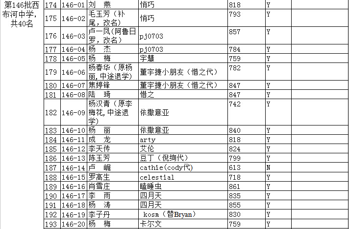 浦老师现在还没有拿到录取分班的学生名单。等浦老师收到后,我们就会发布,谢谢。