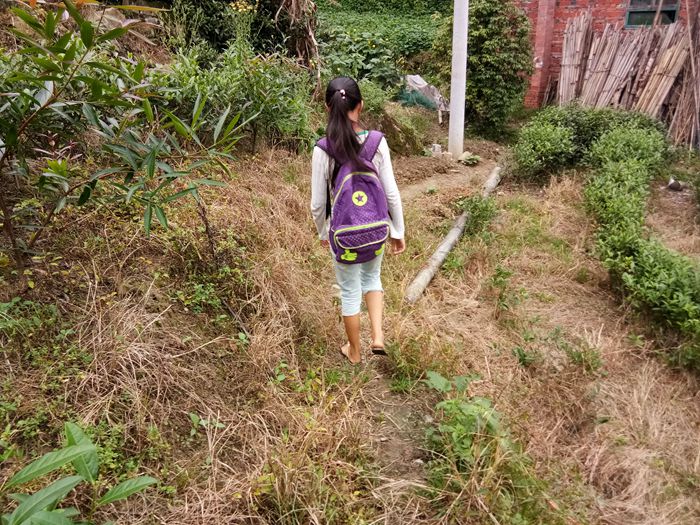 小学生上学之路,修好公路之后,就可以坐拖拉机和面包车上学了。