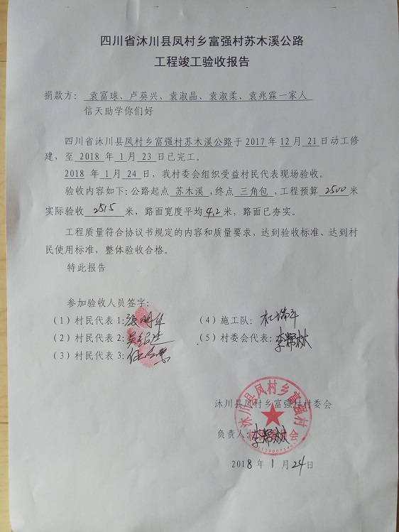(1)爱心人捐款、村民投工投劳一起修土路;