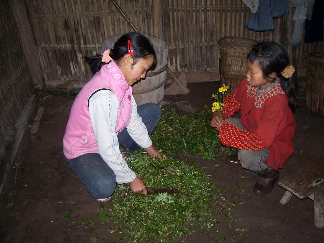 山村两姐妹的一天
