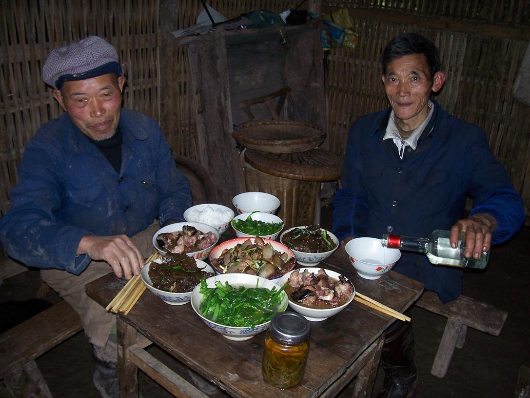 吃午饭了——应该算是晚饭了,快四点了啊——父亲居然搞出来这样一桌饭菜来招待我,不知道他是从那里拿来的肉……