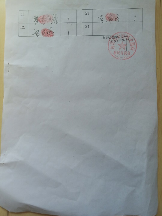 受益村民签字单