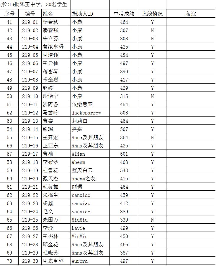 2019年信天助学初中生毕业中考成绩(2019年7月21日更新)