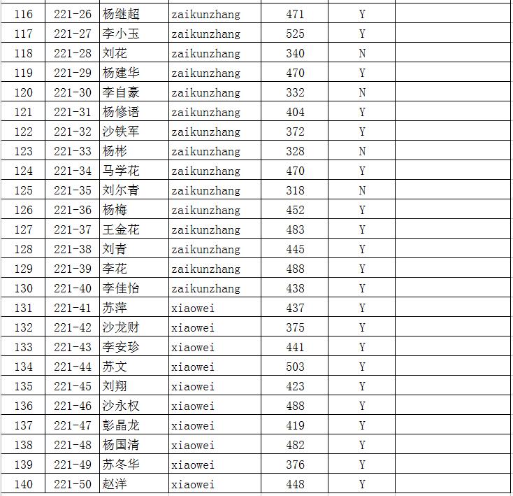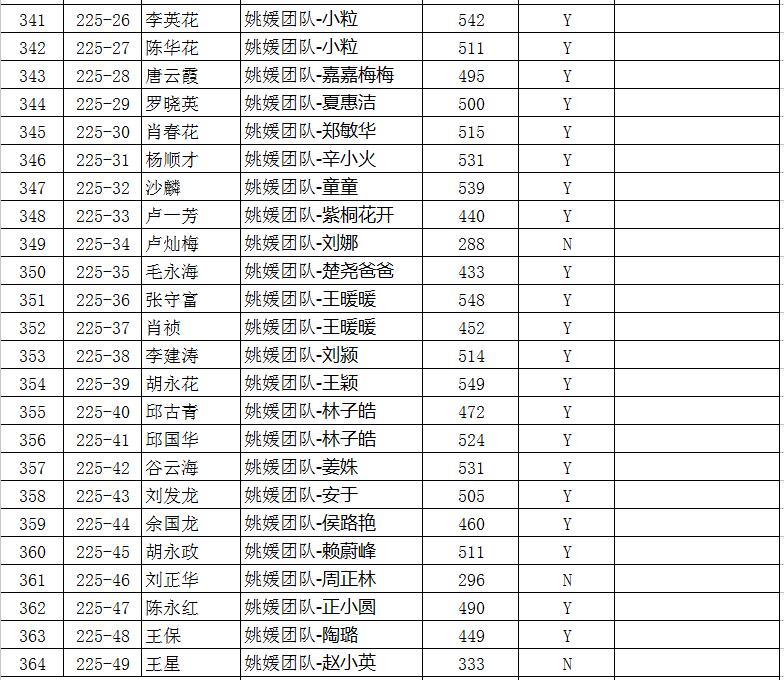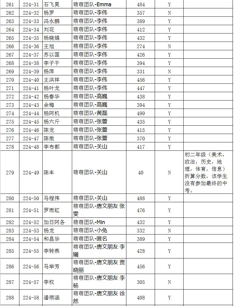 下面是今年中考成绩单:上线标为Y,未上线标为N,高中录取线暂定为:365分。