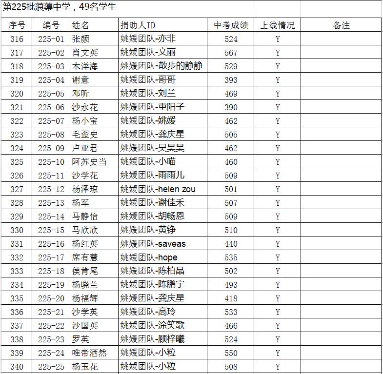 您资助的初中学生今年中考成绩出来了,今年中考录取分数线预计365分。高中录取学校情况还没最后确定,请朋友们耐心等待,一旦录取结束,我们会及时告诉大家,并回复在