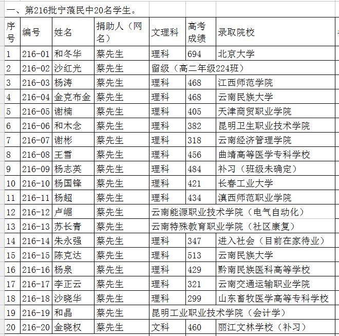 今年高中毕业的有216批、231批、232批、251批(特殊:该批次是从2017年9份(高二)开始捐助)共4批,总人数60名学生参加高考。谢谢大家的多年资助,隔着千山万水,你们向山区孩子伸出了热情之手,您的资助使学生们得到了有力的支持和帮助,让助学的活动得以延续。再次感谢大家。
