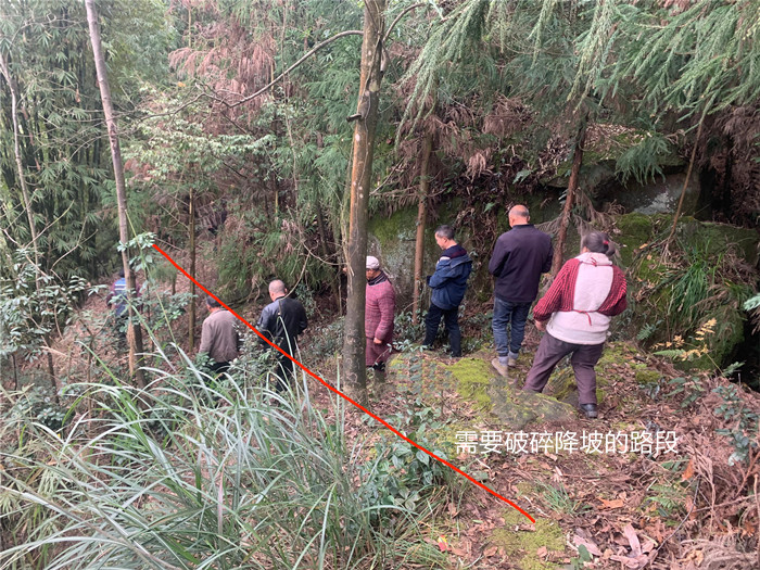 2、特别说明:其中A段约300米路段,地势陡峭且很多大石头,需要破碎降坡,B段有很多地方,需破碎,施工难度特别大,共需增加破碎费用20000元。(根据岩层的坚硬程度来估计)