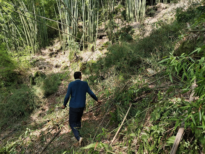 勘察路线,计划把这里的羊肠小道扩宽修建成能跑四轮车的乡间土质公路。
