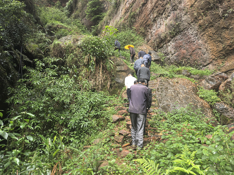 勘察路线,计划把这里的羊肠小道扩宽修建成能跑四轮车的乡间土质公路。