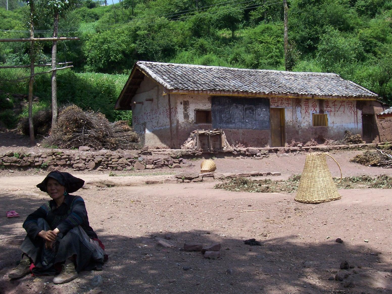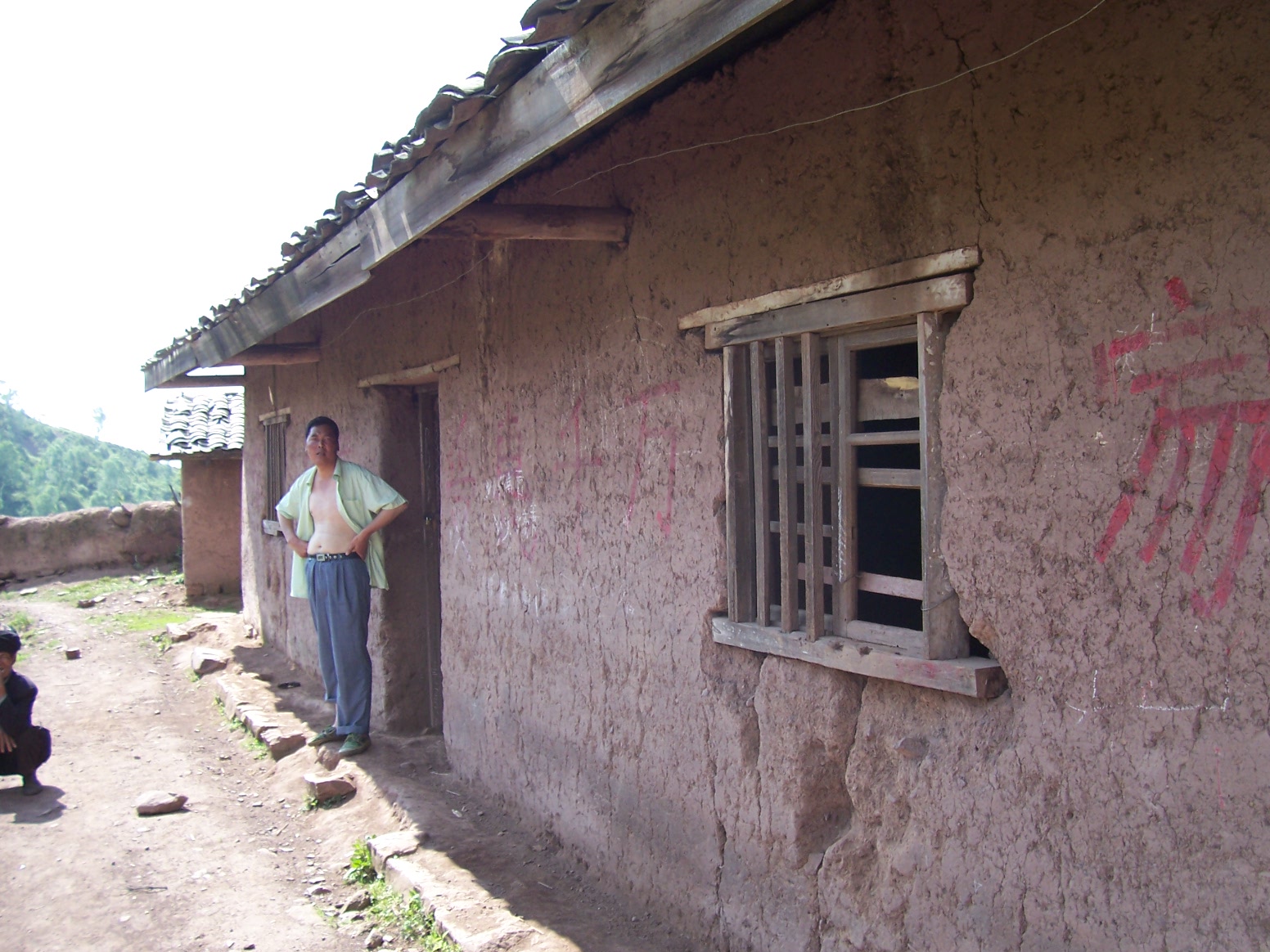6月30日晚饭后,我们又到了处洪觉村校。这个学校在公路边上,是已经30多年的土房子了,早已是危房,厕所也已经坍塌,不过刚维修过,破房子穿了件新衣服,远处看上去还可以……