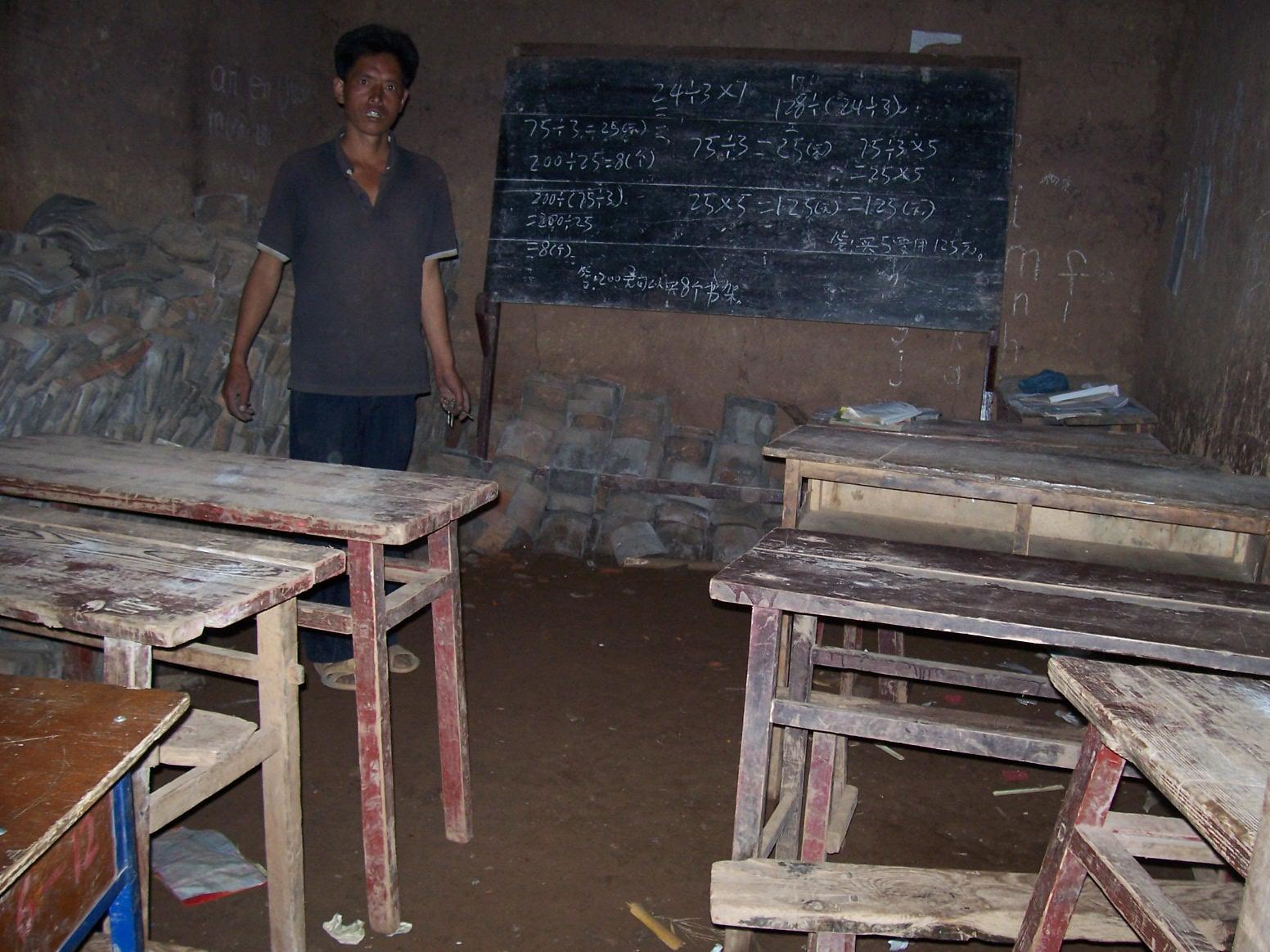 楼主之前介绍了:华岗村校目前只有一个班级,二年级38个学生,由一个代课老师任教。华岗村有6个村民组,153户970多人口,学龄儿童100多个,尚有一多半没有进入学校。现在的校舍是已经属于危房了的土墙瓦房4间。
