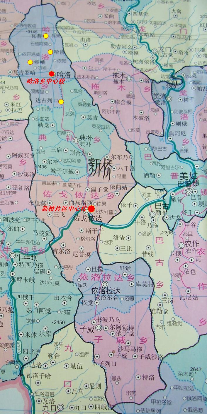 哈洛乡是属于美姑县心桥片区的,心桥片区是我这次来美姑考察最先到的一个片区,由于哈洛乡交通极为不便,我去那里时片区中心校考虑不要让我大劳累,也因为在那里建学校可能造价太高,不大相信我们会到那样偏远的地方建学校,所以没有同我讲哈洛乡的情况,也没有安排我去这个乡……